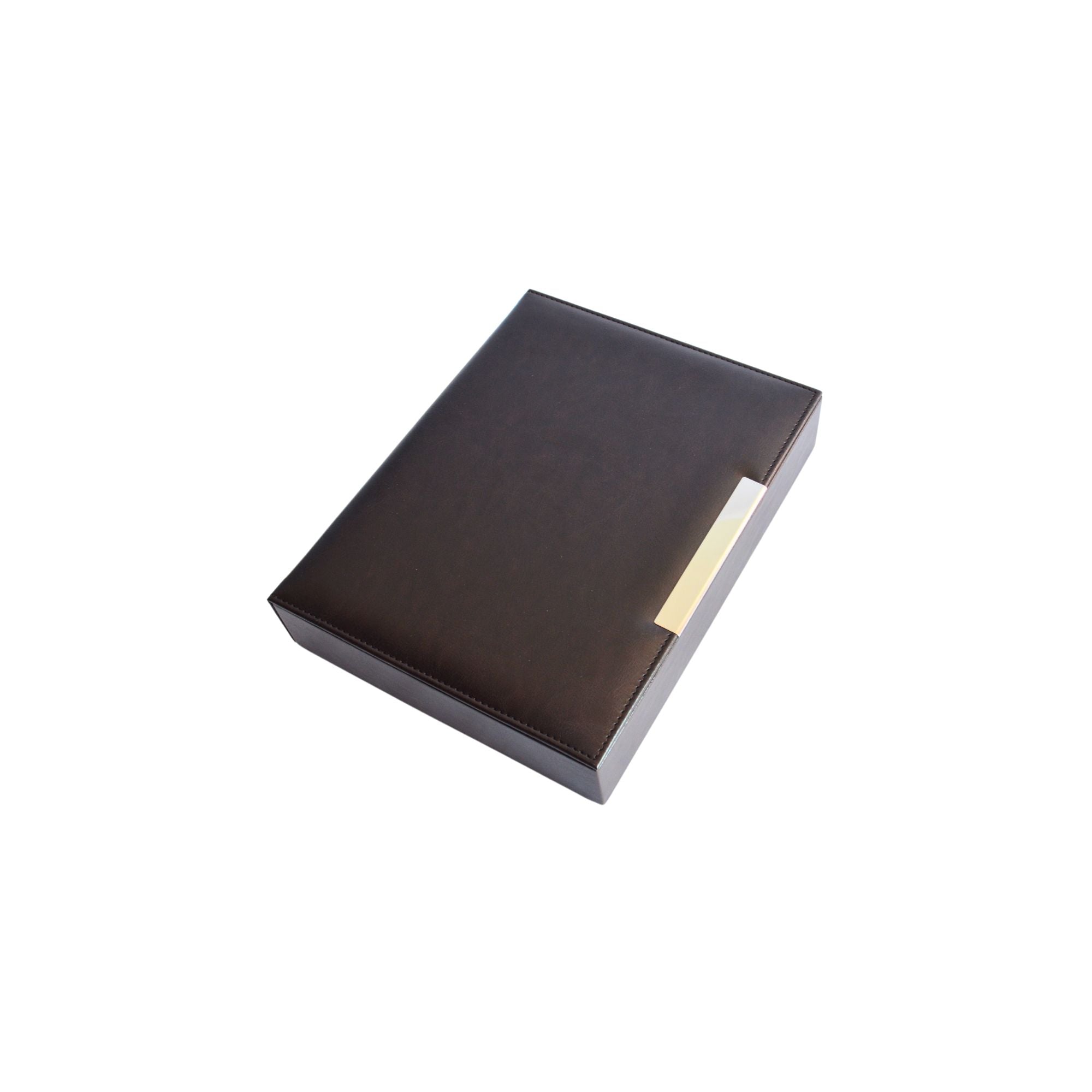 This is a genuine leather gift combo of premium undated notebook, spectacle case & roller pen, packed in a premium gift box.