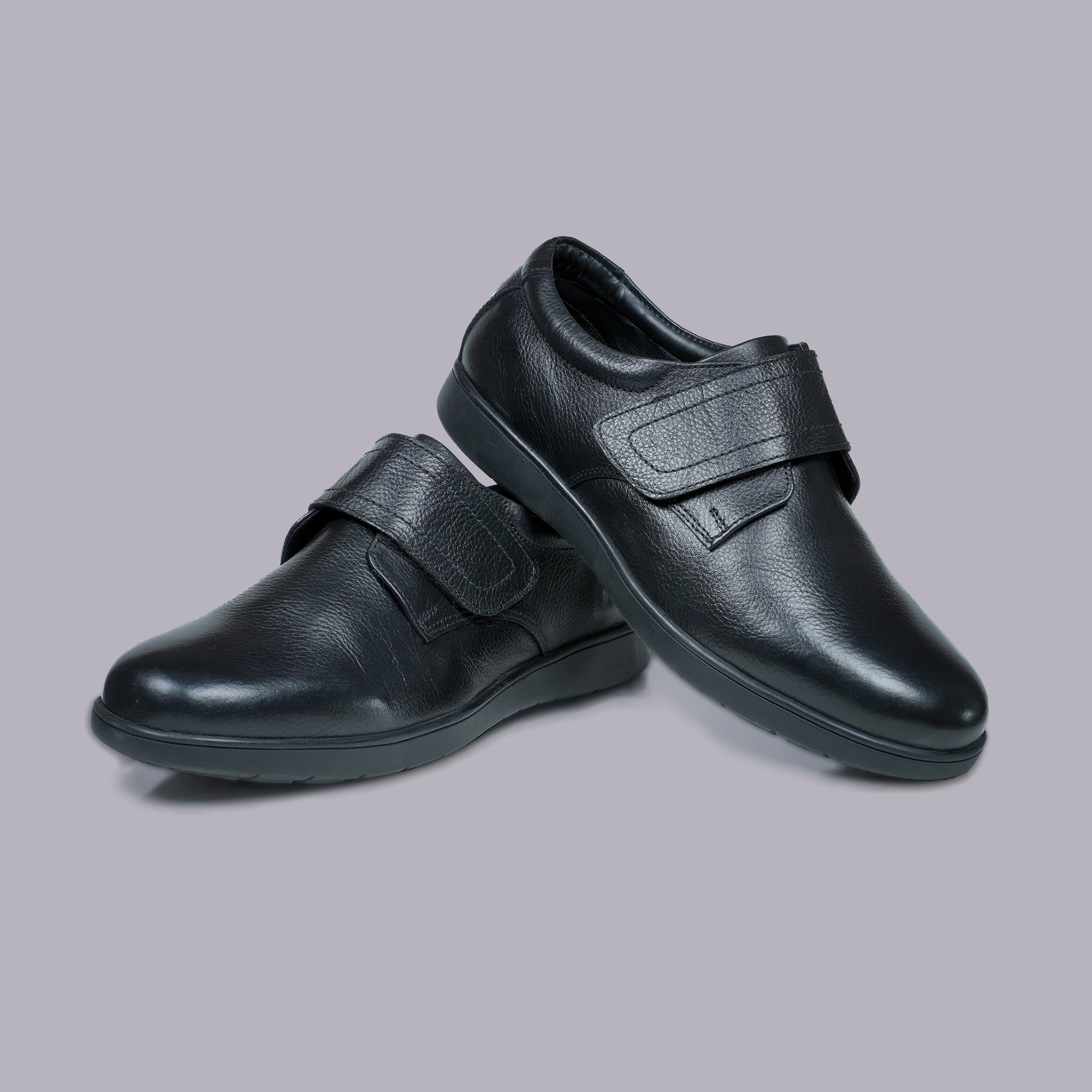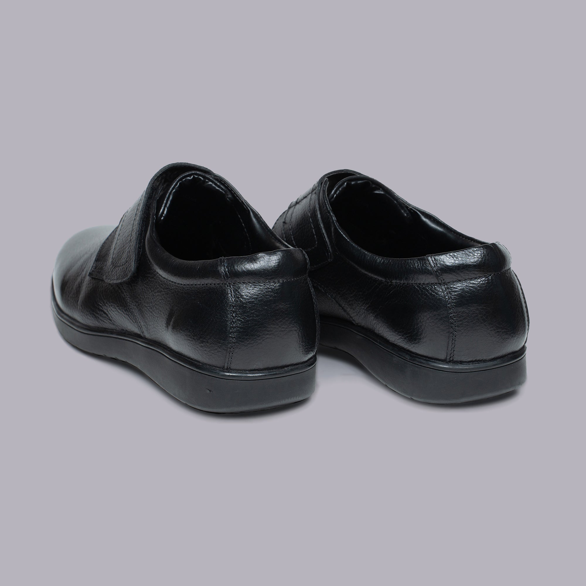 Upper made of matte-finish leather with a structured design. Features a single wide velcro strap for secure, easy fastening. Rounded toe box for comfortable foot space. Padded collar and tongue reduce ankle friction. Rubber outsole offers slip resistance and flexibility. Lightweight EVA midsole adds cushioning. Ideal for easy on-off use, especially for mobility needs. Seamless interior reduces irritation and pressure points. Basic, practical design focused on comfort. Low-heeled for minimal arch strain.