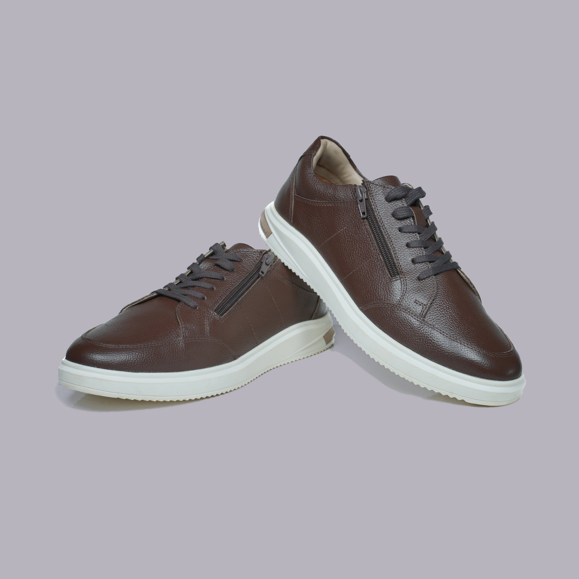 MILO - Dark Brown Pebbled Leather Sneaker with Side Zip