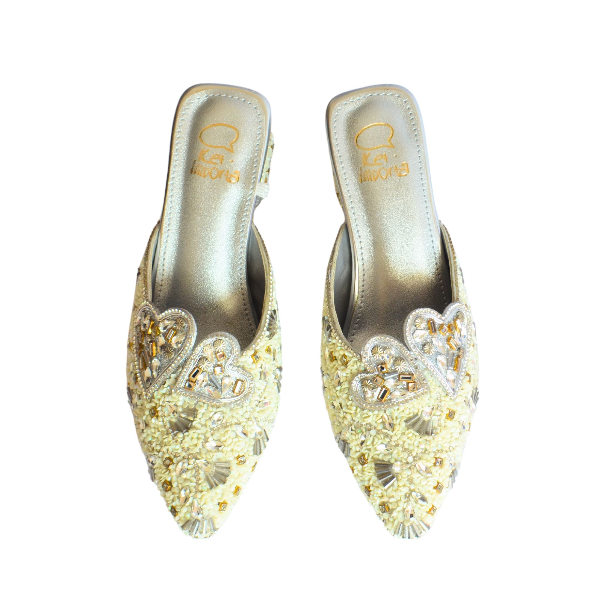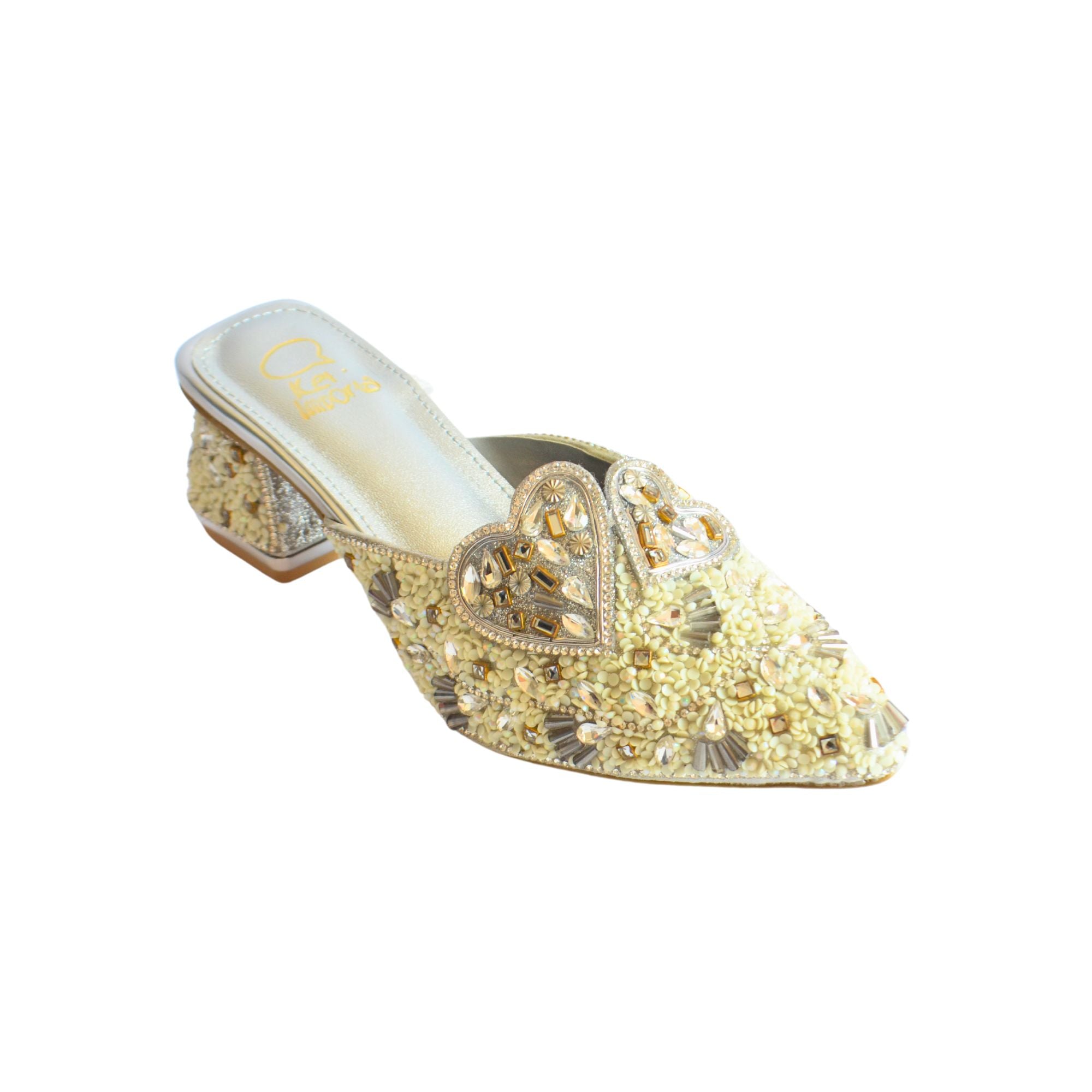 Stride in style with our Mule Heel. Featuring a comfortable heel height, a shiny Silver Zircons and Beads, an elegant floral design, these mules are a must-have addition to your wardrobe. Look effortlessly chic no matter the occasion!